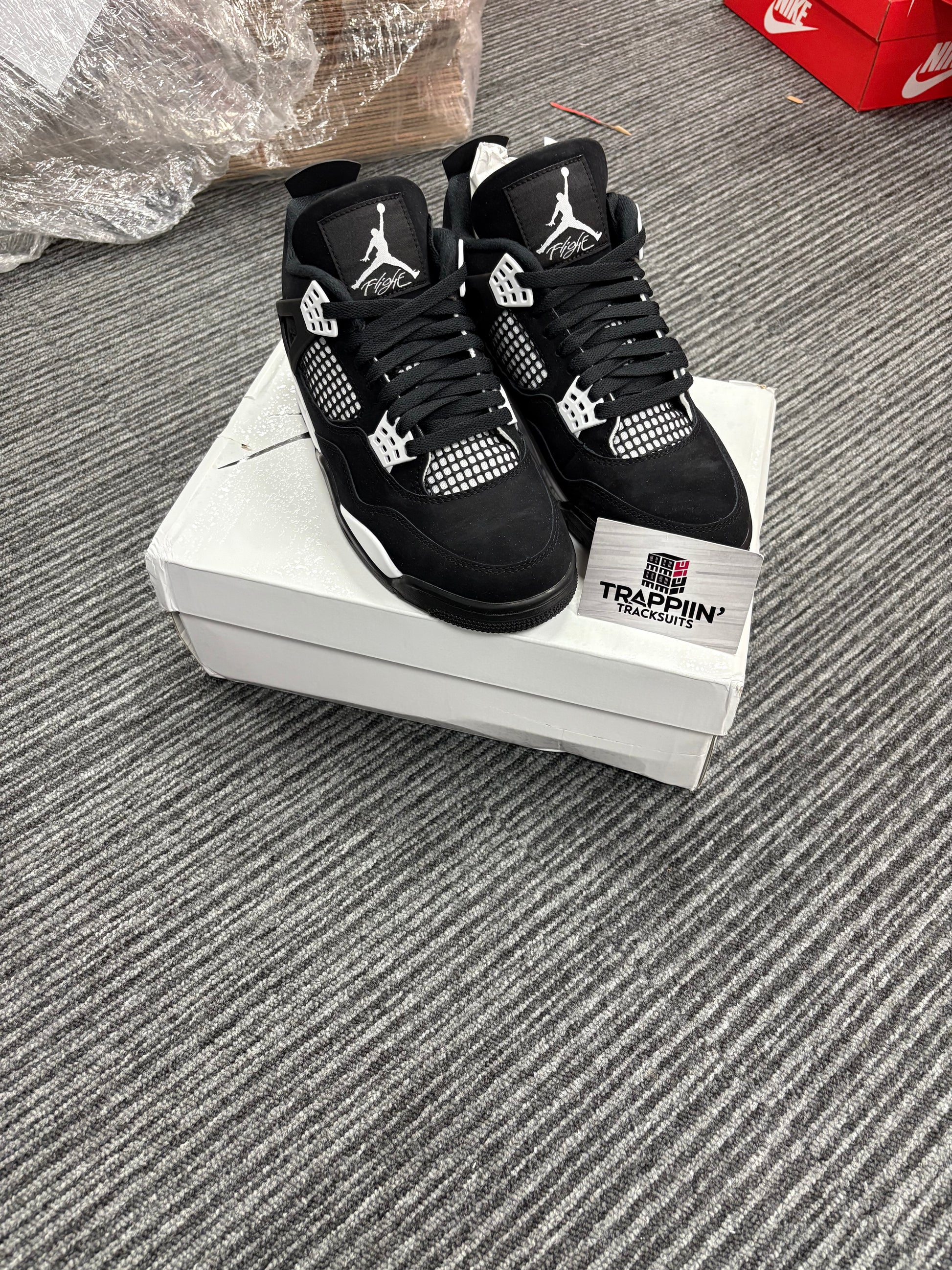 Classic energy, bold contrast. The Air Jordan 4 Retro “White Thunder” delivers a clean and powerful take on a legendary silhouette. Built with premium black nubuck and accented by crisp white detailing, this colorway offers striking contrast and versatile styling. Signature elements like mesh panels, TPU wings, and visible Air cushioning complete the design—making it a must-have for both sneaker collectors and everyday wear.